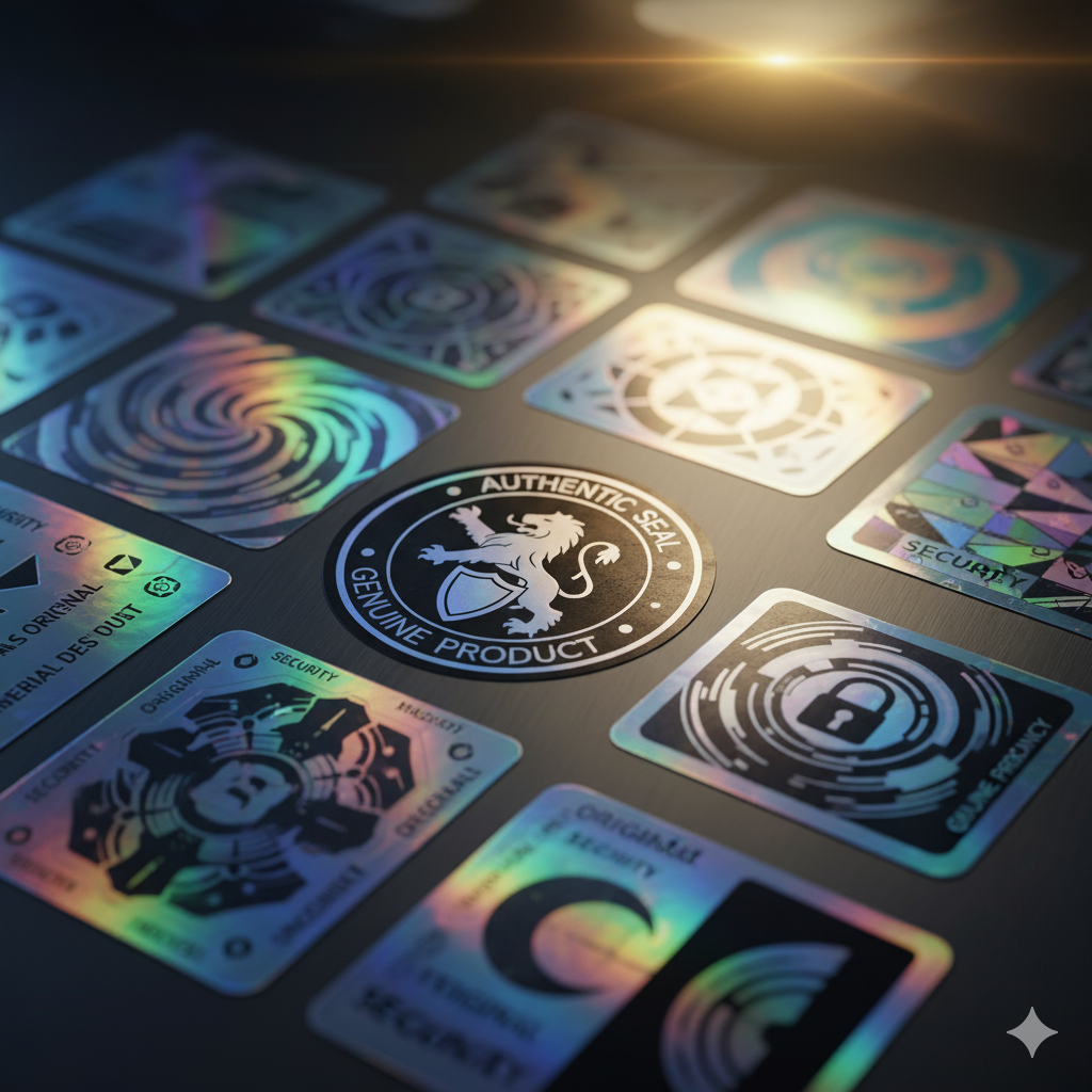 Premium holographic stickers with anti-counterfeit features. Perfect for product authentication, brand protection, and eye-catching packaging that demands attention.